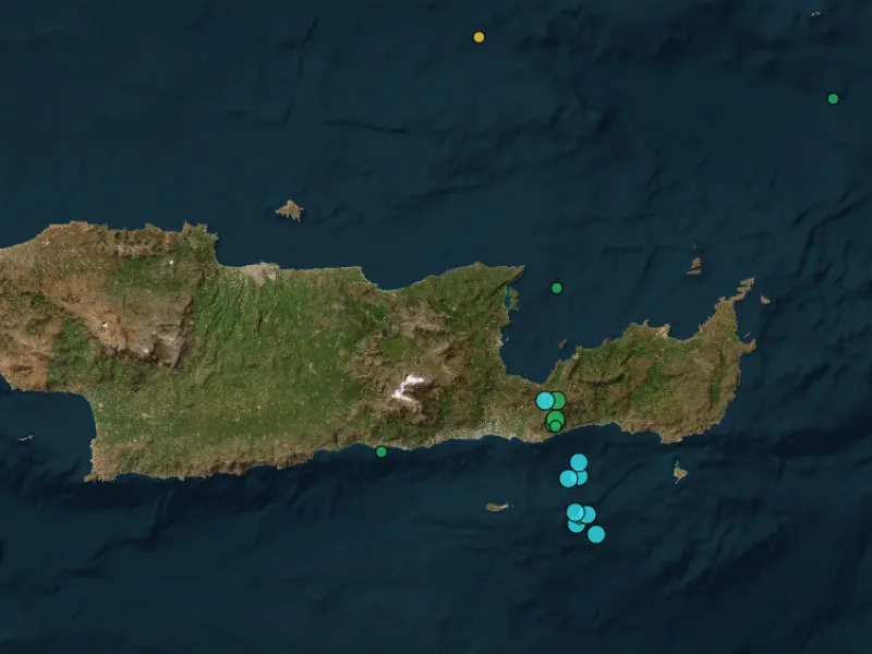 - Καταγράφηκε σεισμική ακολουθία με τέσσερις δονήσεις μεγέθους 3,8 έως 3,9 Ρίχτερ στα νότια της Ιεράπετρας εντός μιας μισής ώρας