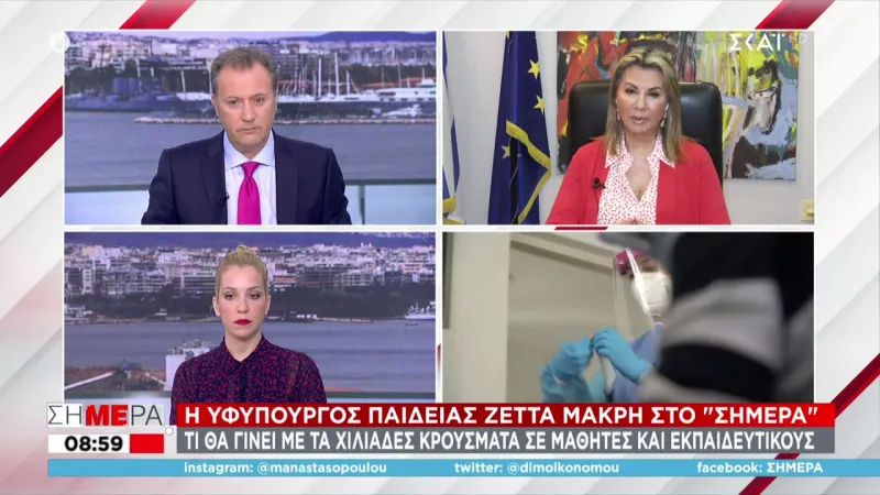 Τη διαβεβαίωση ότι αν χρειαστεί και εφόσον υπάρχει σχετική εισήγηση από την Επιτροπή των Εμπειρογνωμόνων θα αλλάξουν τα πρωτόκολλα για τα σχολεία, έδωσε η υφυπουργός Παιδείας, Ζέττα Μακρή μιλώντας στον ΣΚΑΪ και την εκπομπή «Σήμερα».