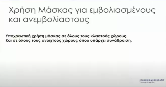 - -Χρήση μάσκας σε όλους τους κλειστούς χώρους και ανοιχτούς όπου υπάρχουν συναθροίσεις.