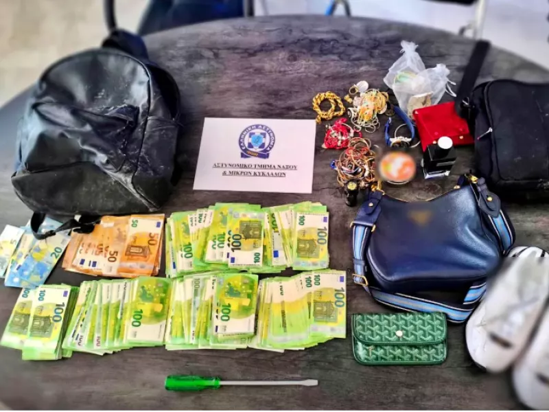 Μέλος συμμορίας που διέπραττε συστηματικά κλοπές από κατοικίες και τουριστικά καταλύματα στη Νάξο, αφαιρώντας χρήματα, τιμαλφή και πολύτιμα αντικείμενα, συνελήφθη επ' αυτοφώρω, σήμερα, Σάββατο 23 Αυγούστου 2025, από αστυνομικούς του Αστυνομικού Τμήματος Νάξου και Μικρών Κυκλάδων.