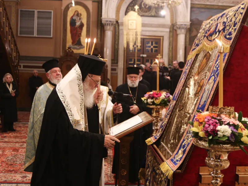 «Να γιορτάσουμε όλοι μας ένα αληθινό, χαρούμενο και ειρηνικό Πάσχα», ευχήθηκε ο Αρχιεπίσκοπος Αθηνών και πάσης Ελλάδος Ιερώνυμος από τον Μητροπολιτικό Ιερό Ναό Αθηνών, όπου τέλεσε το απόγευμα την Α' Στάση των Χαιρετισμών προς την Υπεραγία Θεοτόκο, πλαισιωμένος από τους ιερείς του ναού και τον γενικό αρχιερατικό επίτροπο της Ιεράς Αρχιεπισκοπής Αθηνών πρωτοσβύτερο π. Εμμανουήλ Παπαμικρούλη.