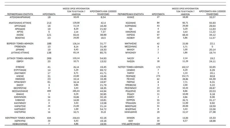 Αναλυτικότερα τα κρούσματα στις περιφερειακές ενότητες που ανήκουν στην Αττική: