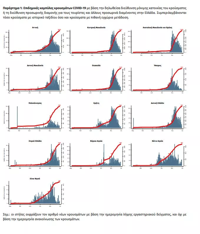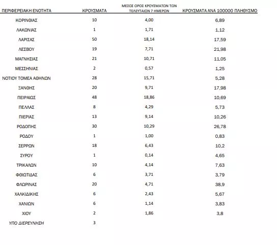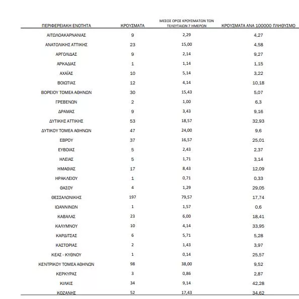 Από αυτά προκύπτει πως εντοπίστηκαν 327 κρούσματα στην Αττική, 197 στη Θεσσαλονίκη, ενώ σε καμία άλλη περιφέρεια δεν καταγράφηκε τριψήφιος αριθμός κρουσμάτων.
