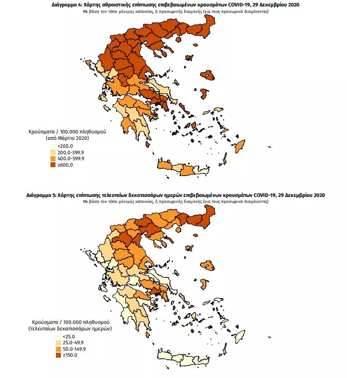 Στην Αττική τα περισσότερα κρούσματα εντοπίζονται στον Κεντρικό Τομέα της Αθήνας (98) και στη ΔΥτική Αττική (53).