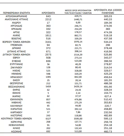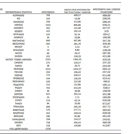Αναλυτικότερα τα κρούσματα στις περιφερειακές ενότητες που ανήκουν στην Αττική: