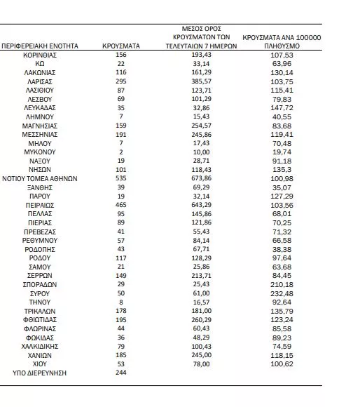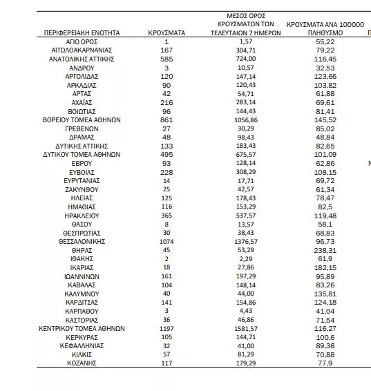 Αναλυτικότερα τα κρούσματα στις περιφερειακές ενότητες που ανήκουν στην Αττική: