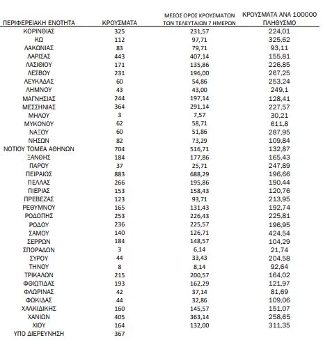 Αναλυτικότερα τα κρούσματα στις περιφερειακές ενότητες που ανήκουν στην Αττική: