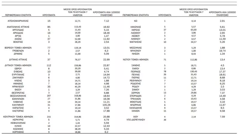 Αναλυτικότερα τα κρούσματα στις περιφερειακές ενότητες που ανήκουν στην Αττική: