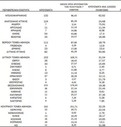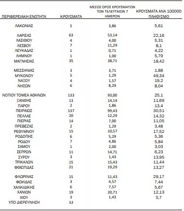 Αναλυτικότερα τα κρούσματα στις περιφερειακές ενότητες που ανήκουν στην Αττική: