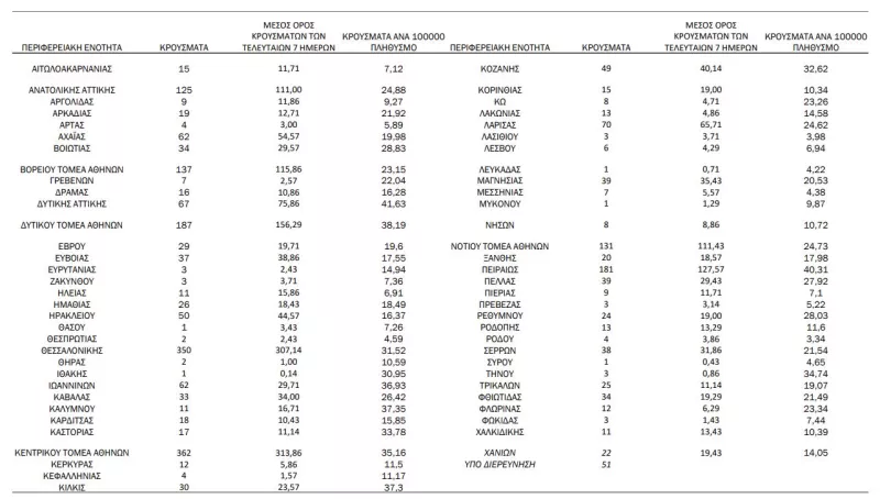 Αναλυτικότερα τα κρούσματα στις περιφερειακές ενότητες που ανήκουν στην Αττική:
