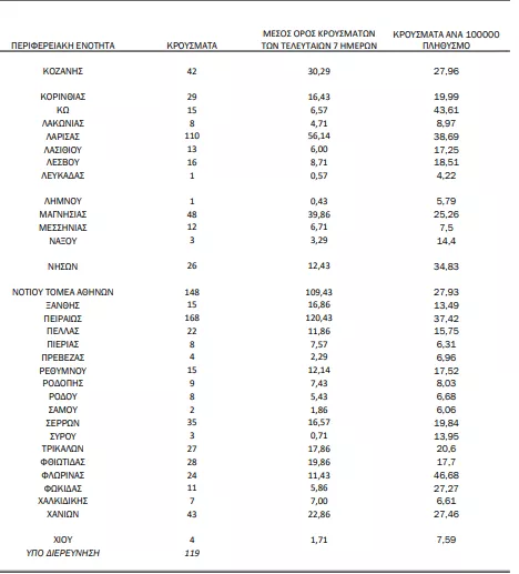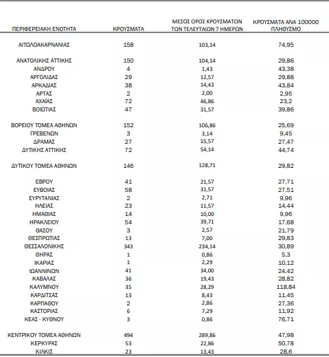 Αναλυτικότερα τα κρούσματα στις περιφερειακές ενότητες που ανήκουν στην Αττική: