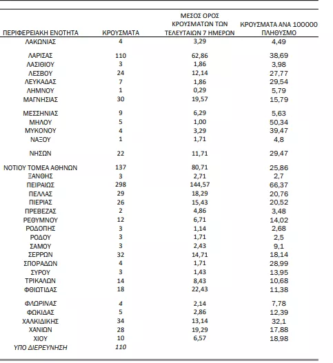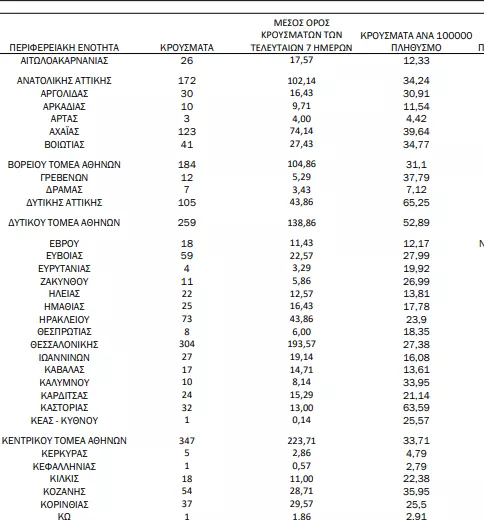 Αναλυτικότερα τα κρούσματα στις περιφερειακές ενότητες που ανήκουν στην Αττική: