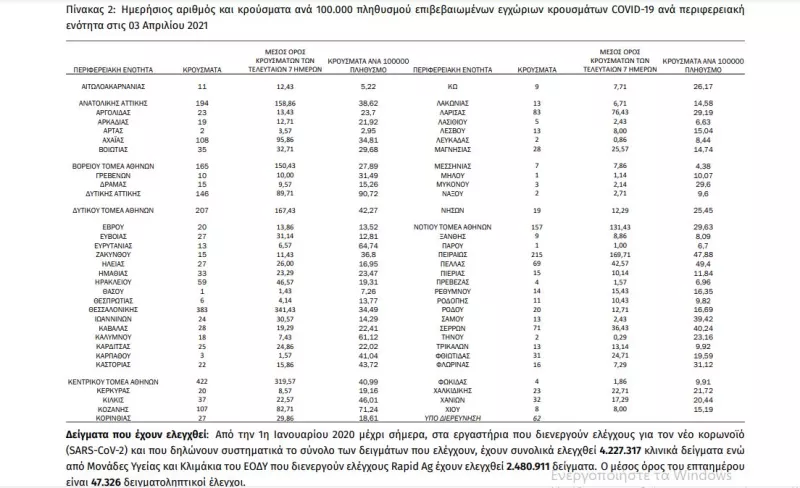 Αναλυτικότερα τα κρούσματα στις περιφερειακές ενότητες που ανήκουν στην Αττική: