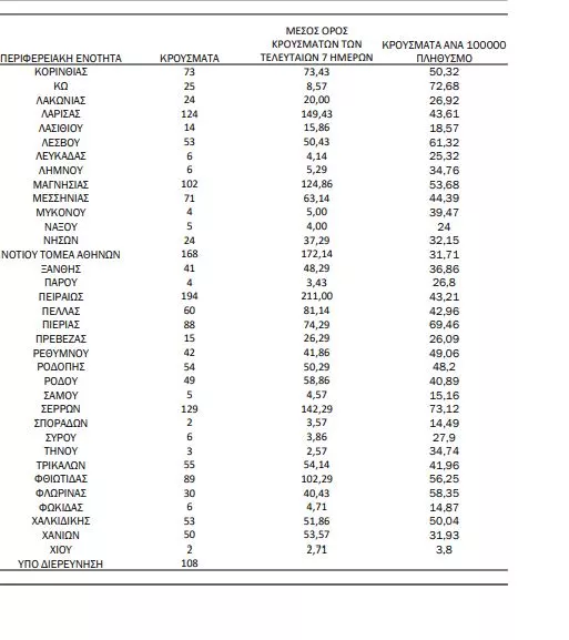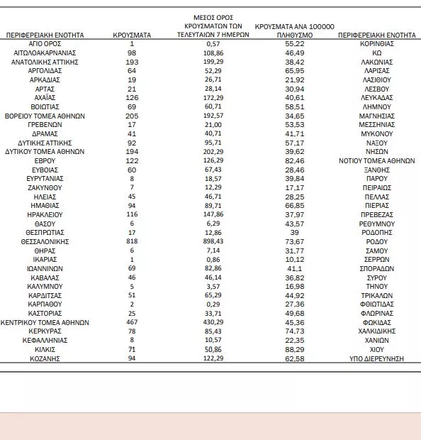 Η κατανομή των κρουσμάτων στην Αττική σήμερα είναι εξής:
