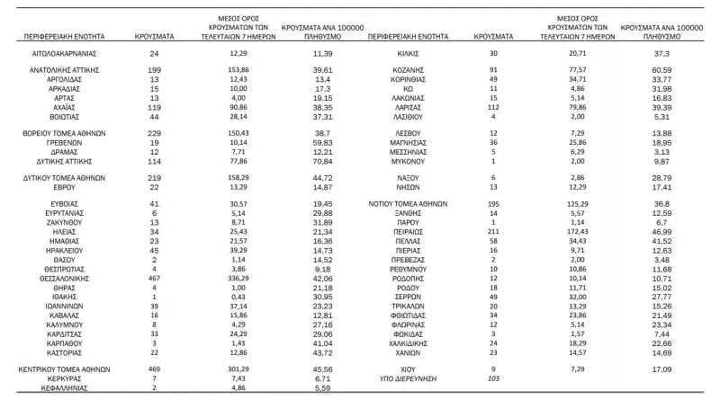 Αναλυτικότερα τα κρούσματα στις περιφερειακές ενότητες που ανήκουν στην Αττική: