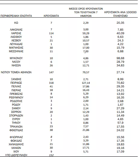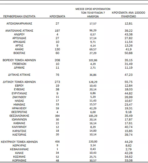 Αναλυτικότερα τα κρούσματα στις περιφερειακές ενότητες που ανήκουν στην Αττική: