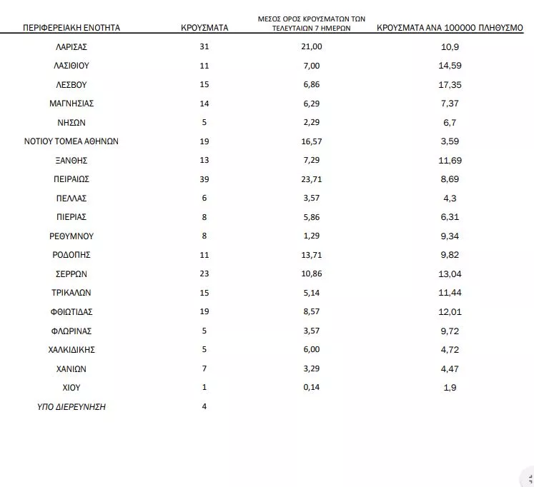 19 κρούσματα στην Π.Ε. Φθιώτιδας