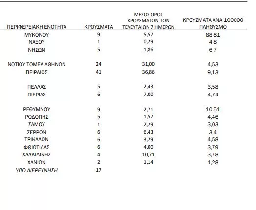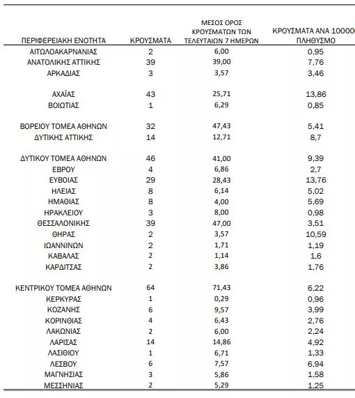 Αναλυτικά η κατανομή των κρουσμάτων ανά περιφέρεια