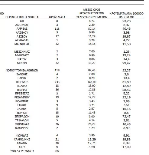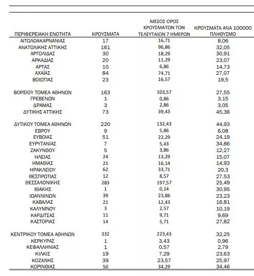 Αναλυτικότερα τα κρούσματα στις περιφερειακές ενότητες που ανήκουν στην Αττική:
