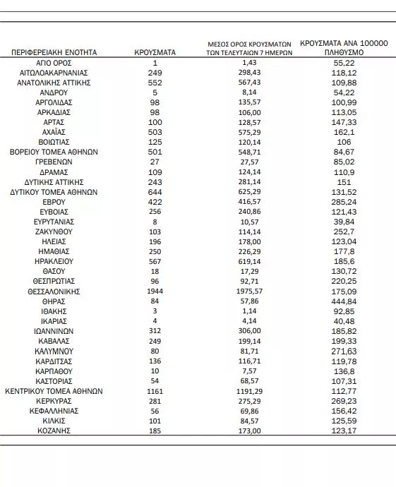 23 κρούσματα στην Π.Ε. Φωκίδας