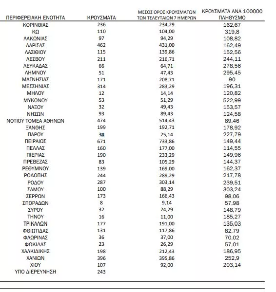 243 κρούσματα υπό διερεύνηση