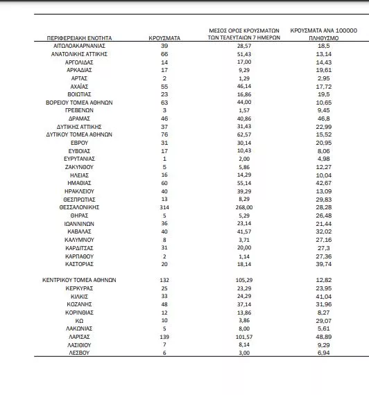 Η γεωγραφική κατανομή των 2.232 κρουσμάτων covid-19 έχει ως εξής: