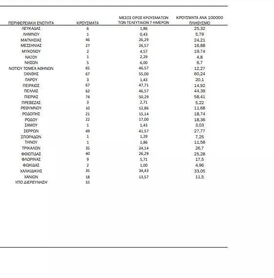 55 κρούσματα υπό διερεύνηση