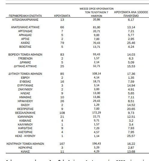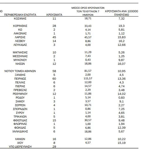 Αναλυτικότερα τα κρούσματα στις περιφερειακές ενότητες που ανήκουν στην Αττική: