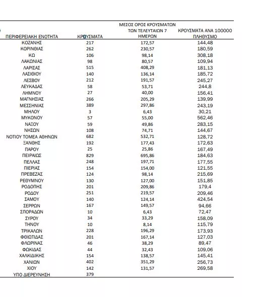 Στο «κόκκινο» παραμένει η Αττική καθώς από τα 19504 νέα κρούσματα που ανακοίνωσε σήμερα ο ΕΟΔΥ οι 6062 μολύνσεις εντοπίζονται στο Λεκανοπέδιο.