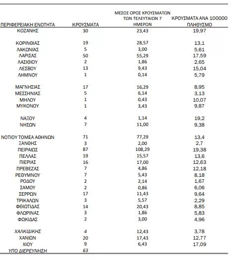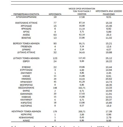 Κεντρικός Τομέα Αθηνών: 179 κρούσματα