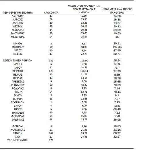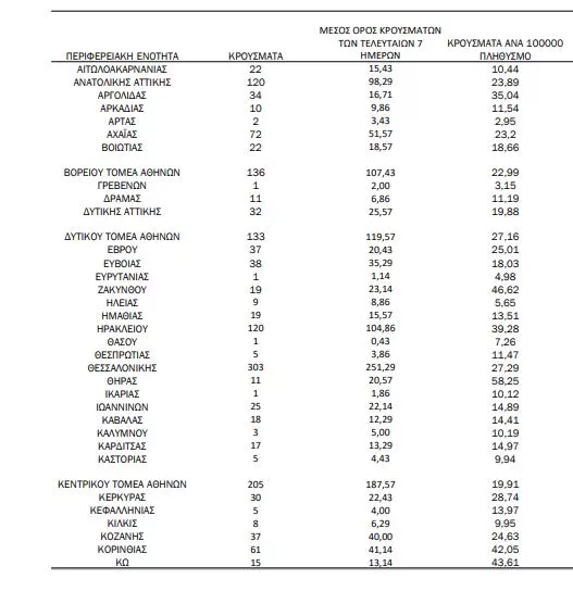 Αναλυτικότερα τα κρούσματα στις περιφερειακές ενότητες που ανήκουν στην Αττική: