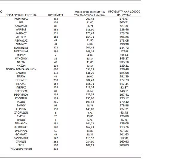 216 κρούσματα στην ΠΕ Δυτικής Αττικής