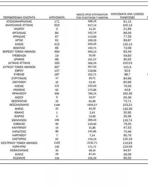 Η γεωγραφική κατανομή των 10.783 κρουσμάτων covid-19 έχει ως εξής: