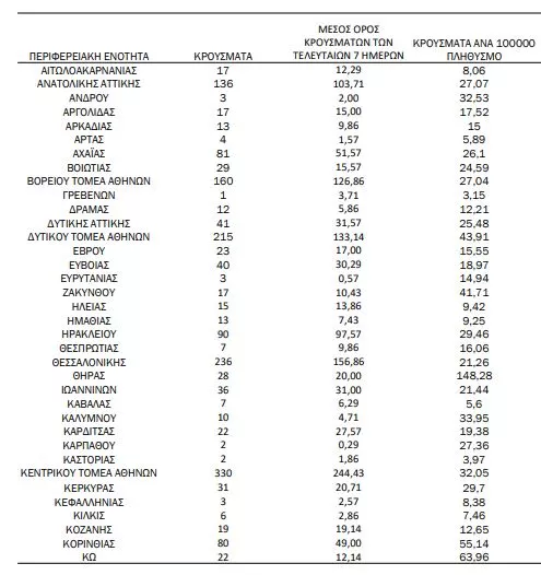 Αναλυτικότερα τα κρούσματα στις περιφερειακές ενότητες που καταγράφηκαν στην Αττική:
