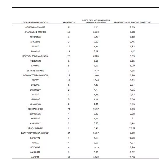37 κρούσματα στην ΠΕ Κεντρικού Τομέα Αθηνών