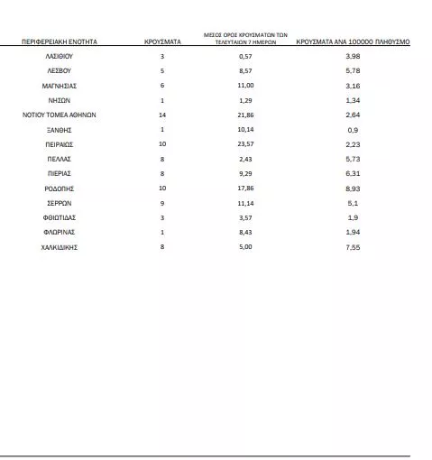 7 κρούσματα στην ΠΕ Δυτικής Αττικής