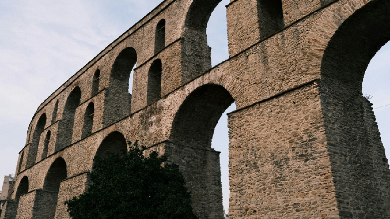 Στην καρδιά της Καβάλας συναντούμε το Παλαιό Υδραγωγείο, γνωστό και ως Καμάρες, που αναμφίβολα αποτελεί τοπόσημο και ένα από τα πιο αναγνωρίσιμα ιστορικά μνημεία της πόλης. Το καλοδιατηρημένο υδραγωγείο είναι πιθανώς ρωμαϊκής προέλευσης, ωστόσο η σημερινή του δομή χρονολογείται στον 16ο αιώνα. Ένα βυζαντινό τείχος των αρχών του 14ου αιώνα, που χτίστηκε ως μέρος των οχυρώσεων στην ακρόπολη της Καβάλας, πιθανότατα λειτουργούσε και ως υδραγωγείο. Αν ισχύει αυτή η θεωρία, τότε πρόκειται για ένα σπάνιο δείγμα βυζαντινού υδραγωγείου, δεδομένου ότι οι βυζαντινές πόλεις χρησιμοποιούσαν συνήθως πηγάδια και δεξαμενές για την υδροδότηση, αντί να συντηρήσουν και να αξιοποιήσουν τα ήδη υπάρχοντα ρωμαϊκά υδραγωγεία, ή να δημιουργήσουν νέα.