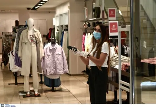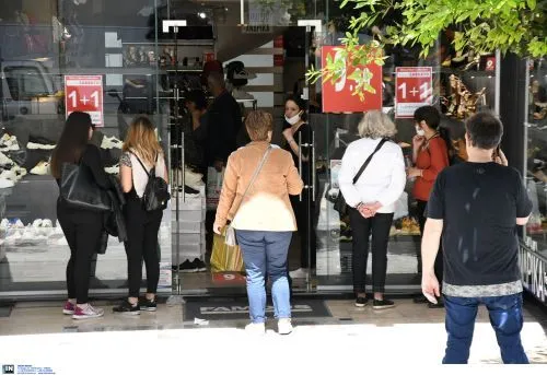 Ουρές κόσμου μαζεύτηκαν έξω από τα μαγαζιά, τηρώντας ωστόσο τις αποστάσεις και τα ατομικά μέτρα προστασίας. Πελάτες και εργαζόμενοι φορούν μάσκες και στα καταστήματα εισέρχεται ο αριθμός πελατών που συστείνουν τα νέα μέτρα.