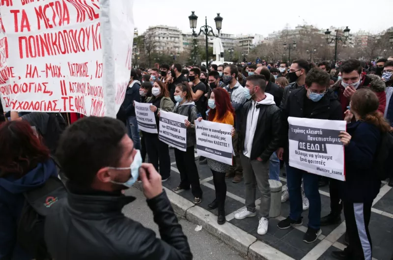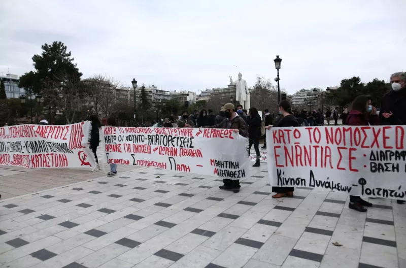 Οι συγκεντρωμένοι αντιδρούν στο νομοσχέδιο που φέρνει αλλαγές στον τρόπο εισαγωγής στα ΑΕΙ καθώς επίσης και στην ίδρυση ειδικής αστυνομικής ομάδας στα πανεπιστήμια καθώς και σε σειρά άλλων θεμάτων.