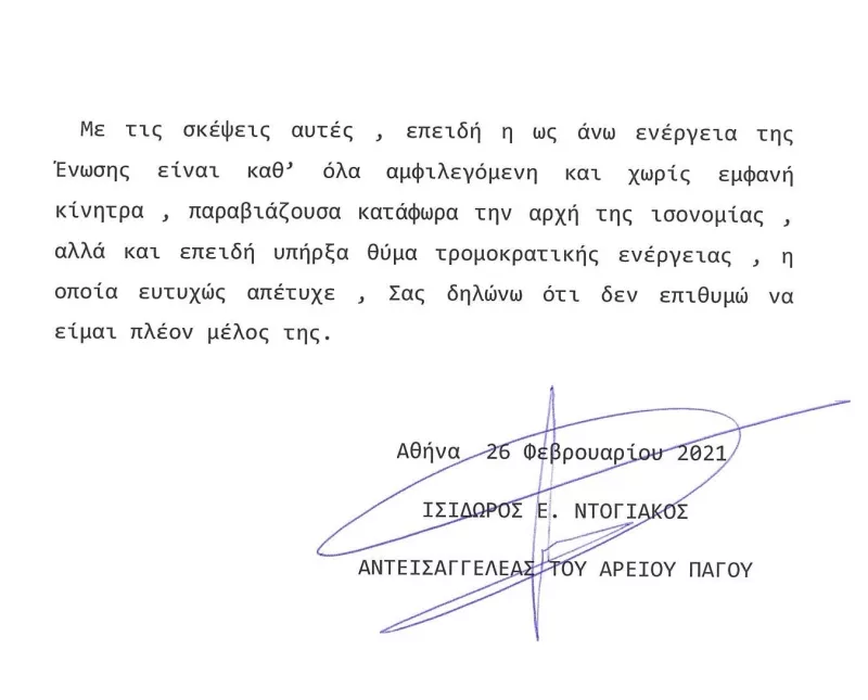 Ολόκληρη η επιστολή – παραίτηση: