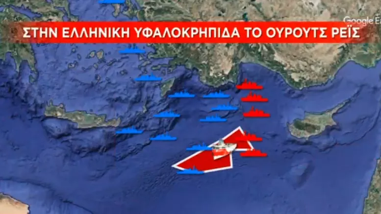 Πολύ κοντά στο Ορούτς Ρέις βρίσκονται τουρκικές φρεγάτες και άλλα σκάφη σε διάταξη νοτίως της Ρόδου μέχρι και νοτίως της Κρήτης.
