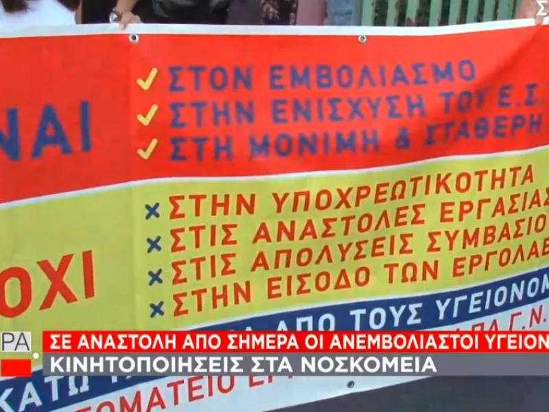 Διαδηλώσεις κατά της υποχρεωτικότητας πραγματοποιούν αυτή την ώρα επαγγελματίες της υγείας σε νοσοκομεία όπως το Πανεπιστημιακό Νοσοκομείο Ηρακλείου, το ΑΧΕΠΑ και το Πανεπιστημιακό Νοσοκομείο Πατρών.
