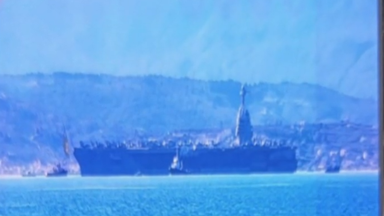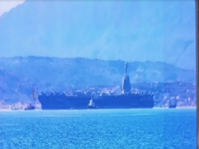 Στις φωτιογραφίες εμφανίζεται επίσης και το αμερικανικό αεροπλανοφόρο USS Gerarld Ford το οποίο είχε καταπλεύσει τον περασμένο Φεβρουάριο στον ναύσταθμο της Σούδας.