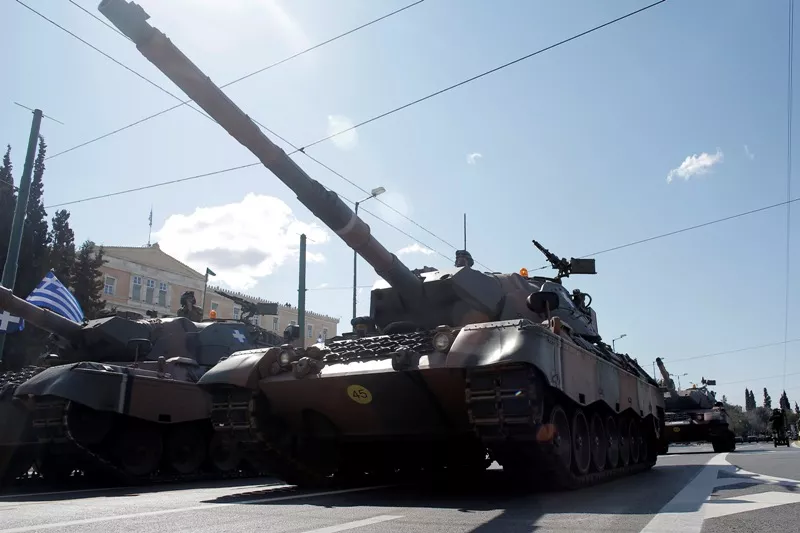 Νωρίτερα και ενώπιον της πολιτειακής και πολιτικής ηγεσίας, αλλά και των ξένων προσκεκλημένων, παρήλασαν πεζοπόρα και μηχανοκίνητα τμήματα ενώ τον δικό τους τόνο καθώς και το δικό τους μήνυμα έδωσαν τα εναέρια μέσα: «Ασπίδα η γαλανόλευκη για κάθε γωνιά του τόπου μας» είπε από τον αττικό ουρανό ο σμηναγός Δημήτρης Βολακάκης, ο αρχαιότερος της ομάδας «Ζευς» των F-16, από τη Μοίρα 343 στη Σούδα, της 115 Πτέρυγας Μάχης, κατά τη διέλευση του αεροσκάφους του.
