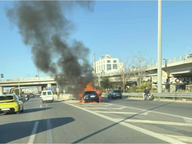 Φωτιά ξέσπασε σε όχημα στη νέα Παραλιακή, στο ρεύμα προς Πειραιά, στο ύψος του Νέου Φαλήρου, το πρωί της Τρίτης.