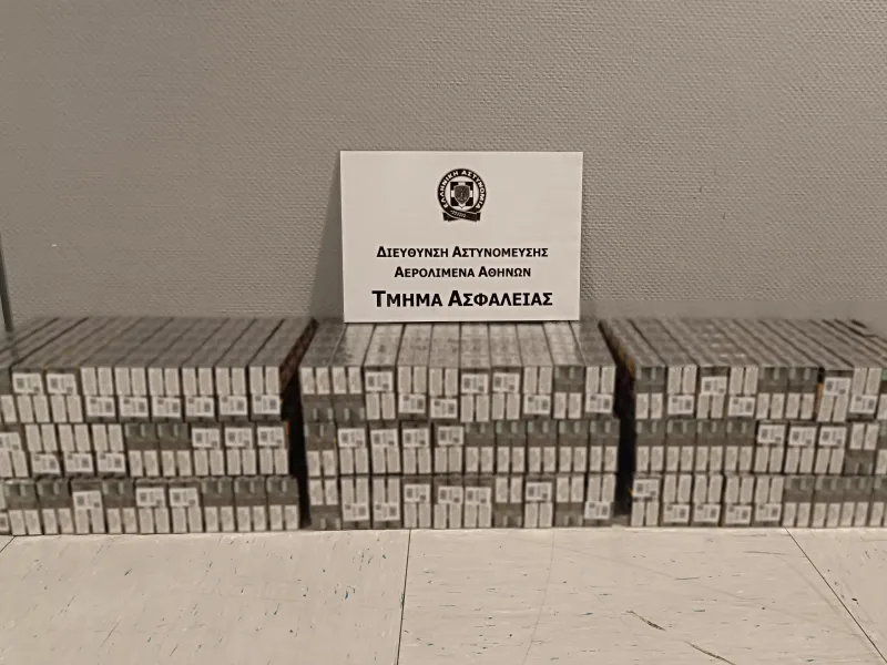 Με 900 πακέτα λαθραία τσιγάρα στη βαλίτσα της πιάστηκε 40χρονη Ουκρανή, μεσημβρινές ώρες χτες Σάββατο 14-2-2026, στο αεροδρόμιο «Ελευθέριος Βενιζέλος», από αστυνομικούς του Τμήματος Ασφαλείας της Διεύθυνσης Αστυνόμευσης Αερολιμένα Αθηνών.