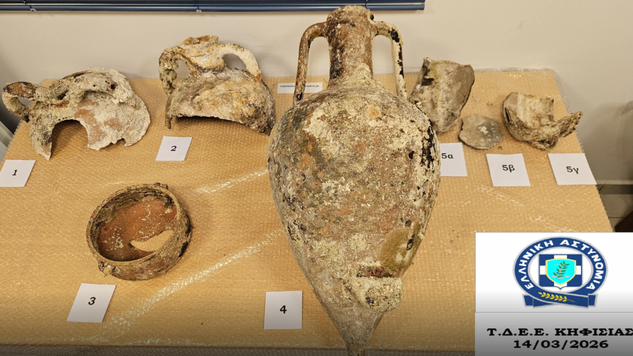 Από αστυνομικούς του Τμήματος Δίωξης και Εξιχνίασης Εγκλημάτων Κηφισιάς εντοπιστήκαν εντός οικίας ενός 50χρονου άνδρα, δέκα τμήματα ενάλιων αμφορέων που χρονολογούνται στην Ελληνιστική, την Βυζαντινή και τη Νεότερη Περίοδο