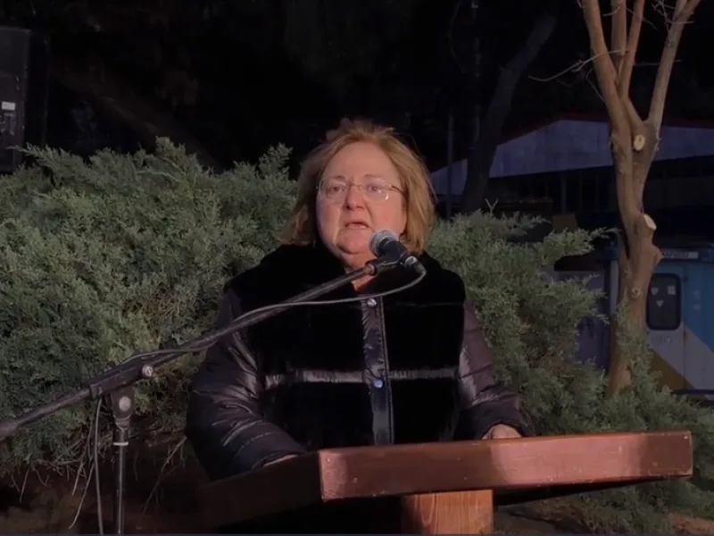 Η τελετή σημαδεύτηκε από την πρώτη δημόσια ομιλία της Γιάννας Βούλγαρη, μητέρας του Σπύρου Βούλγαρη, εκ των δύο μηχανοδηγών της εμπορικής αμαξοστοιχίας, η οποία έσπασε τη σιωπή της καταγγέλλοντας τη στοχοποίηση του παιδιού της, όπως μεταδίδει το πρακτορείο Orange Press.