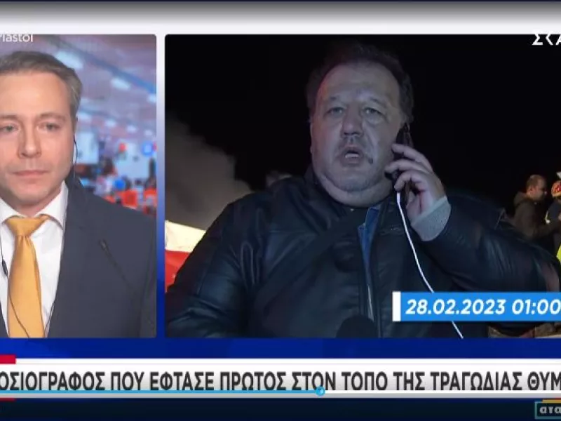 Ο ρεπόρτερ του ΣΚΑΪ Πάνος Γαρουφαλιάς, στη μία τα ξημερώματα της 28ης Φεβρουαρίου 2023, βρέθηκε πρώτος στο σημείο της τραγωδίας και περιέγραψε στην εκπομπή Αταίριαστοι τις πρώτες στιγμές.