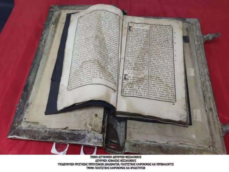 Ειδικότερα, κατά τη διάρκεια επιχείρησης που πραγματοποιήθηκε πρωινές ώρες χθες (30-06-2023), εντός κοσμηματοπωλείου ιδιοκτησίας του συλληφθέντα στο κέντρο της πόλης, βρέθηκαν, (1) Ιερό Ευαγγέλιο παλαιού τύπου, (1) βεβαίωση παραλαβής για το ανωτέρω αντικείμενο στην οποία αναγράφονταν τα στοιχεία 78χρονου ημεδαπού και σε βάρος του σχηματίσθηκε σχετική δικογραφία και (242) νομίσματα.